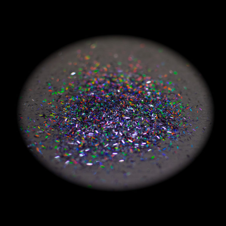色が通常のレインボーラメフレークと比べ、ブラックカラーなので反射した虹色が濃く見えます。