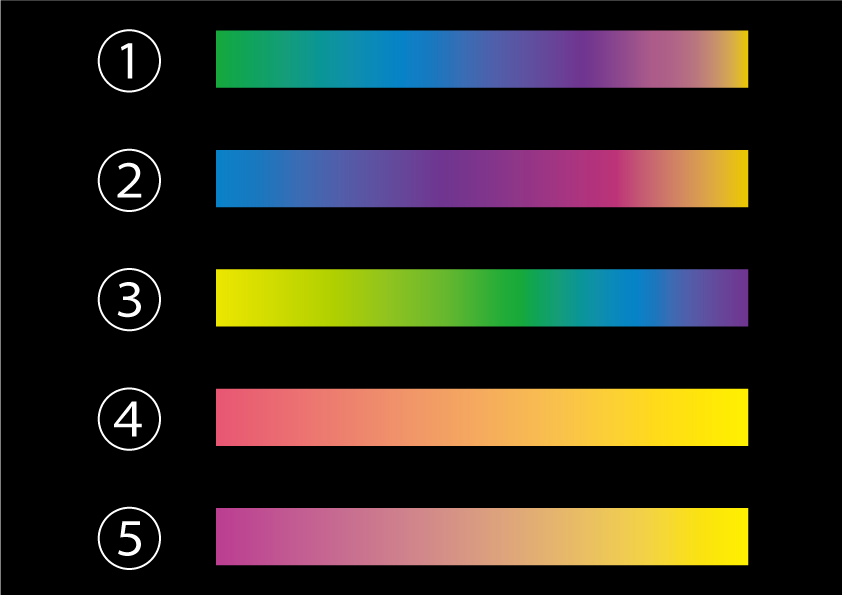 グリーン、ブルー、パープルとグラデーションのようにカラフルに見えるはずです。