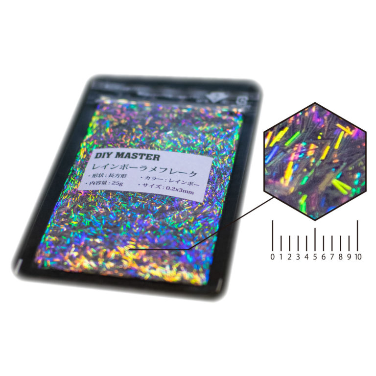 レインボーラメフレーク ロング 0.2mmx3mm (中)