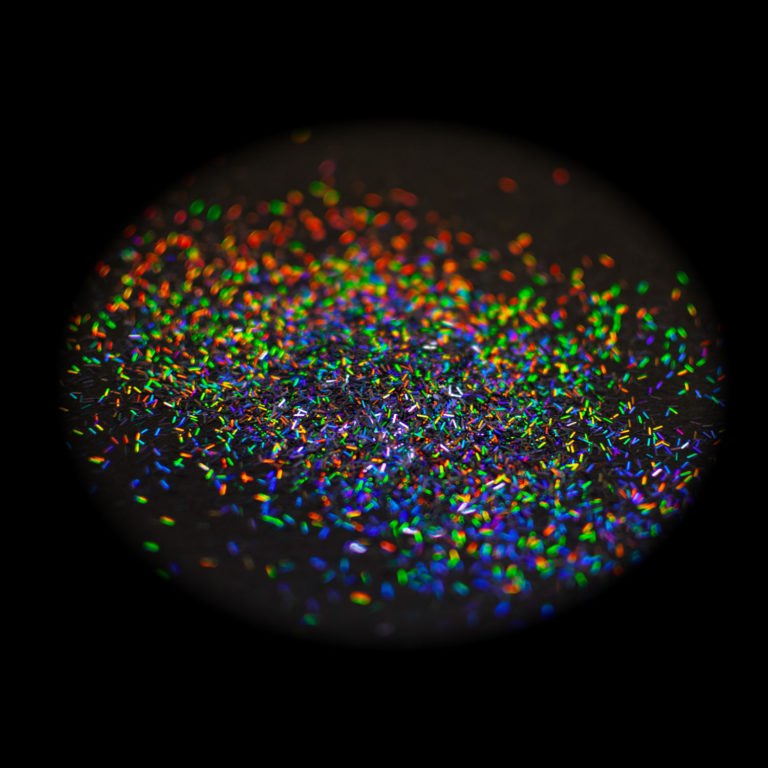 色が通常のレインボーラメフレークと比べ、スモークカラーなので反射した虹色が濃く見えます。