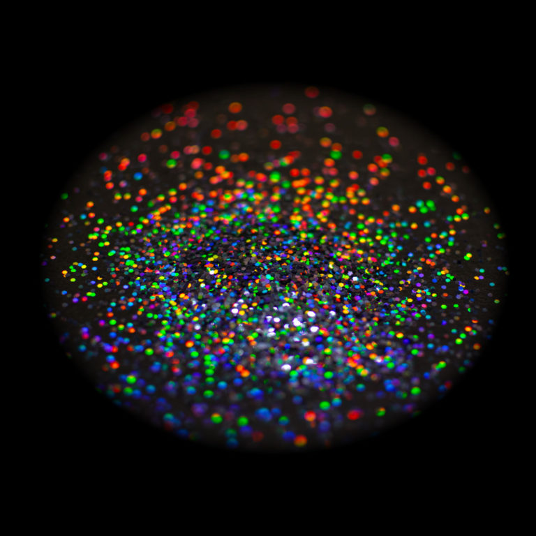 色が通常のレインボーラメフレークと比べ、スモークカラーなので反射した虹色が濃く見えます。